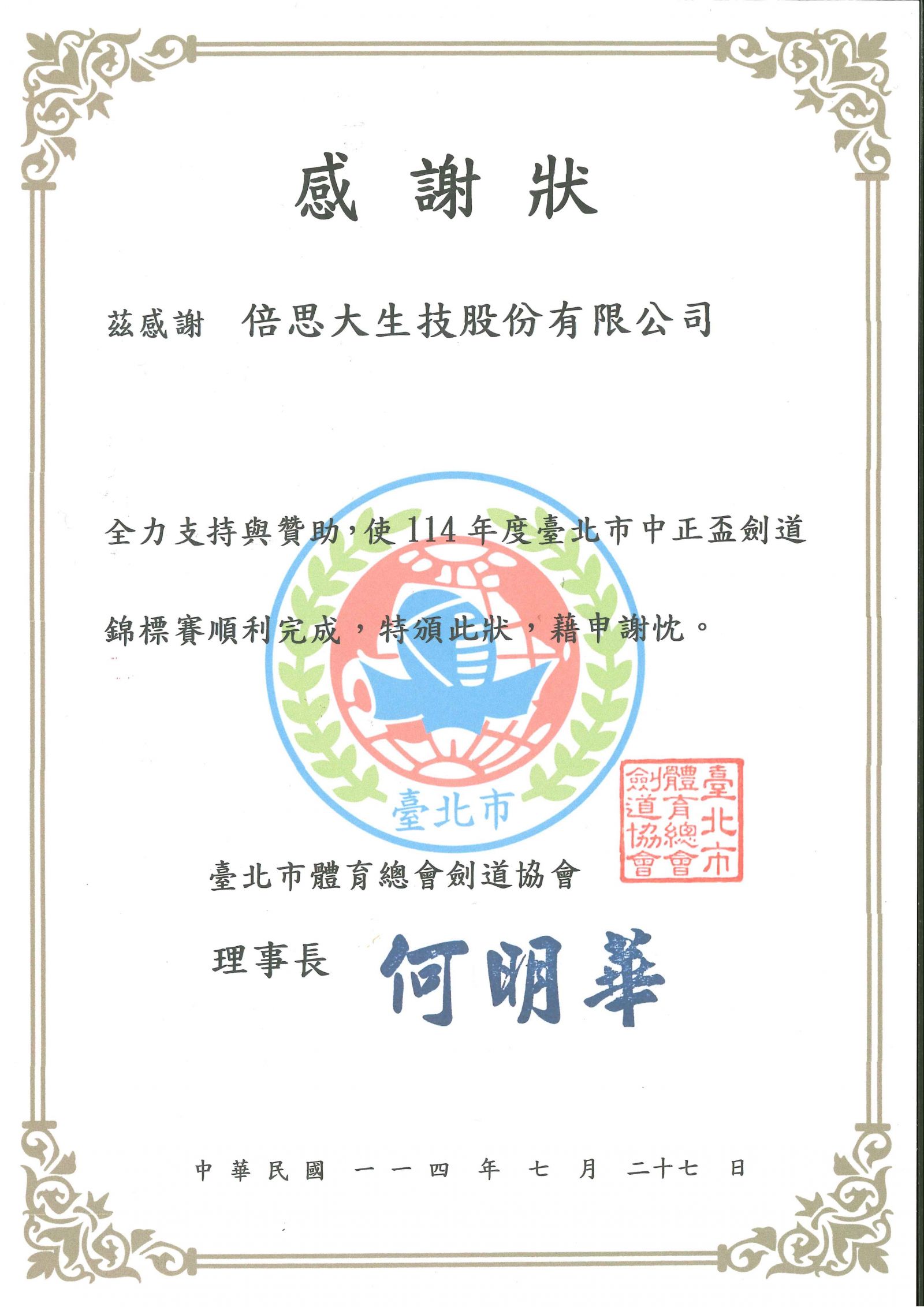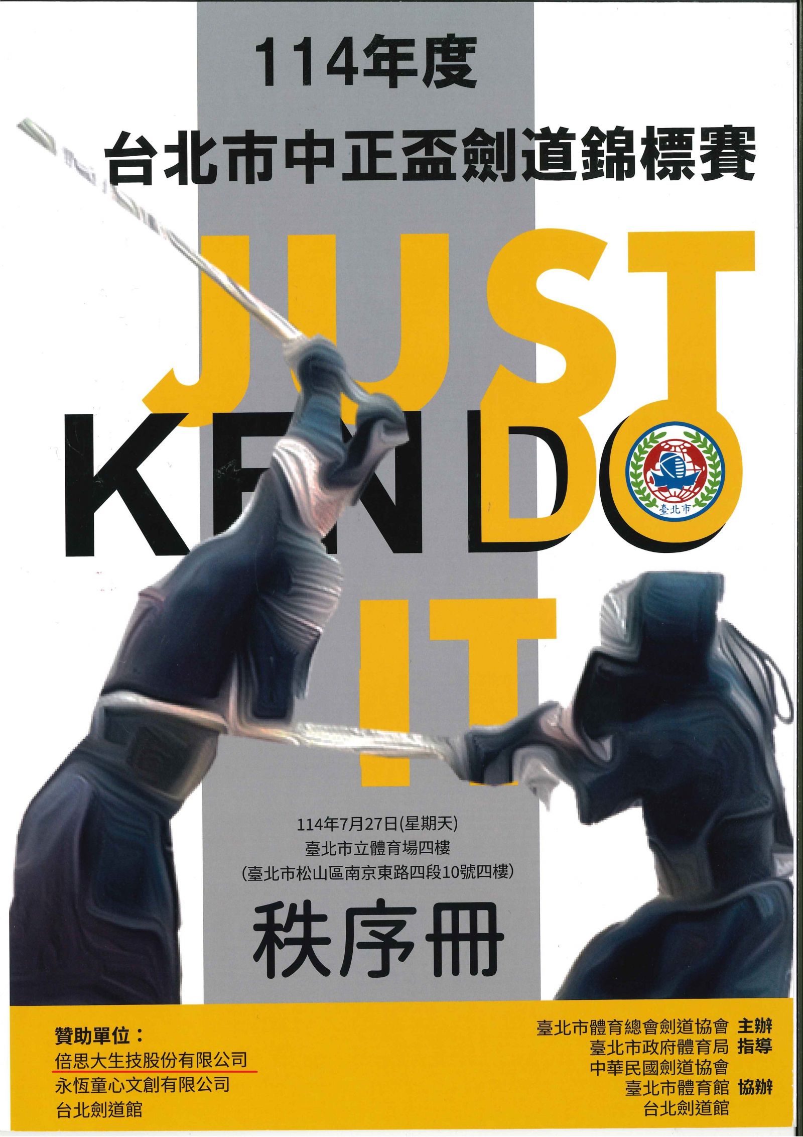 On July 27, 2025, the Taipei City Zhongzheng Cup Kendo Championship took place at the Taipei Municipal Stadium with great enthusiasm. This year’s event brought together talented kendo practitioners from across Taiwan, delivering thrilling matches that showcased athletic spirit and unwavering determination.